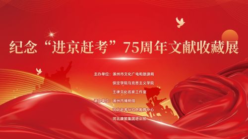 《纪念进京赶考75周年文献收藏展》由涿州市文化广电和旅游局、保定学院马克思主义学院、王律文化名家工作室主办,涿州市博物馆、河北赶考行红色教育中心、河北康旅集团培训部承办。
