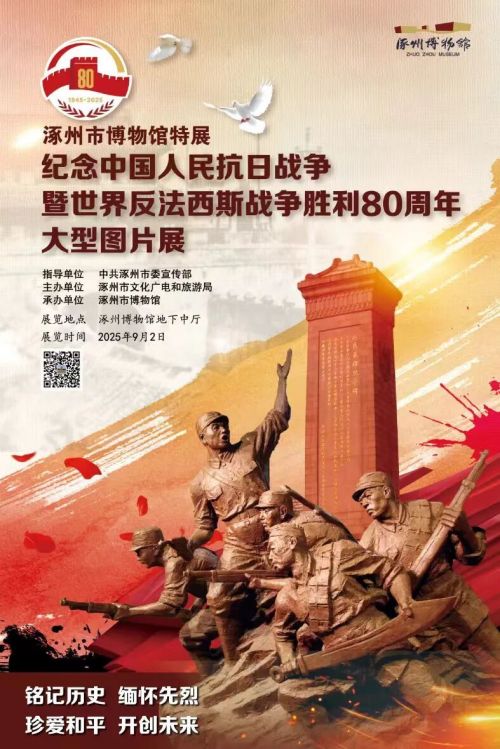 为纪念中国人民抗日战争暨世界反法西斯战争胜利80周年。2025年9月2日,由涿州市文化广电和旅游局主办;涿州市博物馆承办的“涿州市博物馆特展——纪念中国人民抗日战争暨世界反法西斯战争胜利80周年大型图片展”于博物馆地下中厅顺利开展。