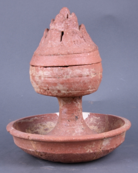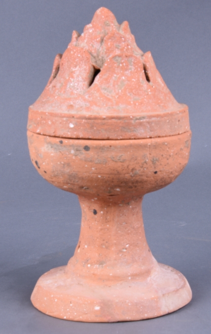 夹砂红陶博山炉 |